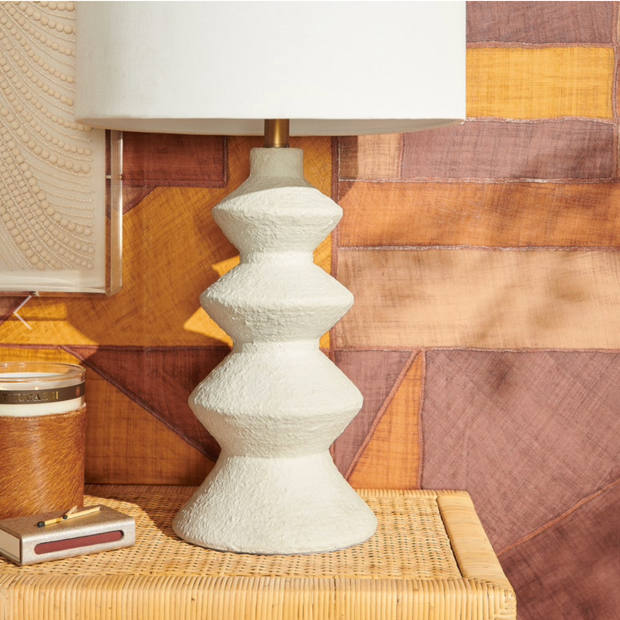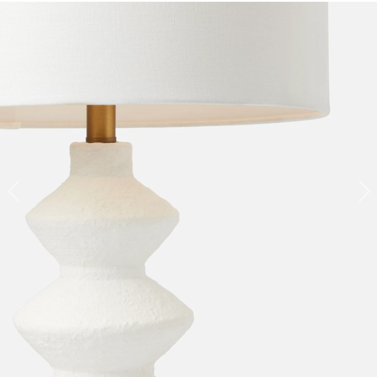 The modern take on the spindle table lamp, the Collier features a textured matte white resin base with four undulating sections, descending in width towards the shade.